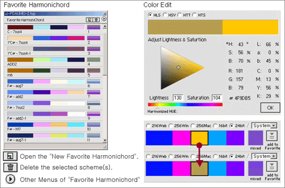 - Automatic conversion of the HCS selected coloring into the palette format supported in various graphic